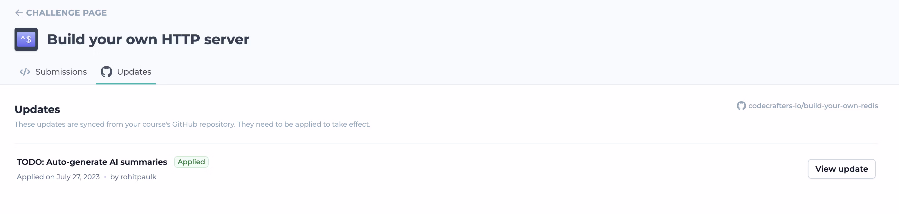 Your course’s admin page is located at https://app.codecrafters.io/courses/<slug>/admin/updates.