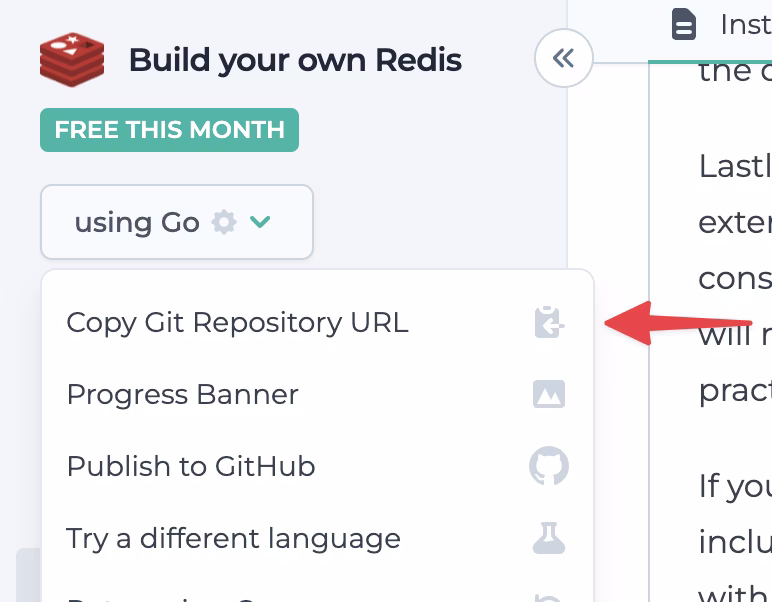 git filter-repo tool will automatically remove your configured remote CodeCrafters Git repository. Restore it using the following steps:Copy the CodeCrafters Git repository URL from the dropdown menu: